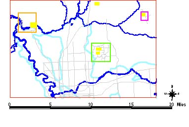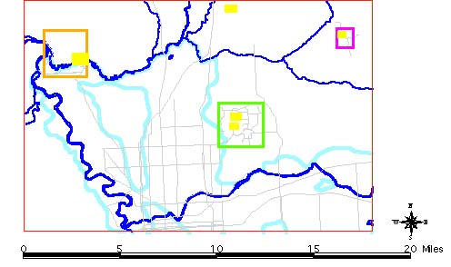 | Each location can be zoomed in to so the research sites and the topography of the location can be viewed. These detail location maps include each research site area, ponds, water flow areas and other information about the location. | |||||
